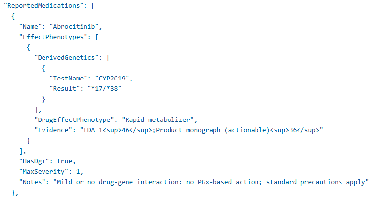 A new Extended Raw Report provides more comprehensive genetic and medication insights. It includes Drug-Gene Interaction (DGI) messages, current medications, report medications, recommended medications with severity levels, and a detailed phenotype table with star alleles. Labs gain deeper clinical transparency and insights into report data.