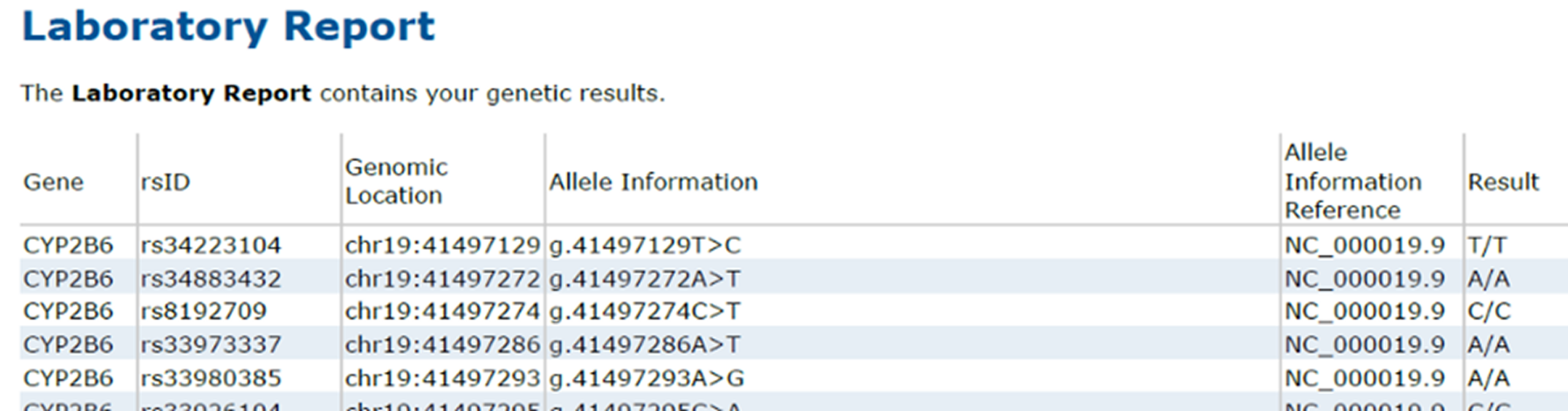 Laboratory Report table fields now use updated, clinically precise terminology. HGVS column has been renamed to Allele Definition, and HGVS Reference has been renamed to Allele Information Reference.
