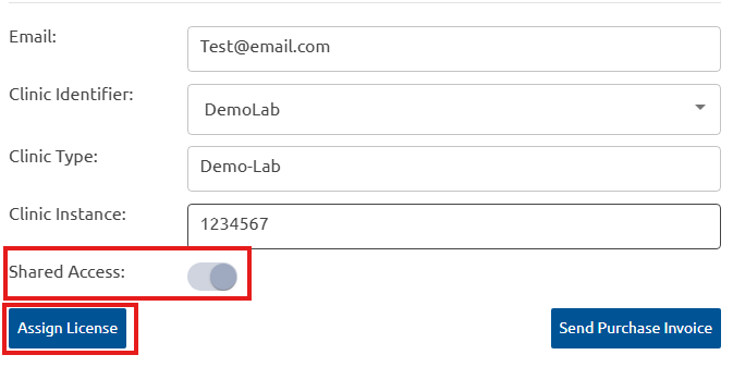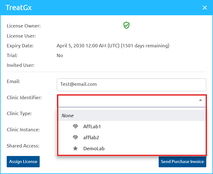 We have introduced enhancements to User and License Management to provide greater flexibility and administrative control. When sharing a license invite, assign a Clinic Identifier, Clinic Type, and Clinic Instance, plus enable shared access immediately. While selecting the Clinic Identifier, the appropriate clinic instance must be selected from the dropdown, and clinic instances can be configured for affiliated laboratories too.