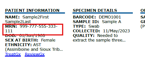 A new MRN (Medical Record Number) Field enhances patient tracking in reports. Labs can optionally include MRN when submitting patient data. If included, the MRN will appear in the report header, making it easier to link reports to patient records.